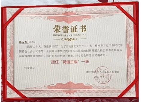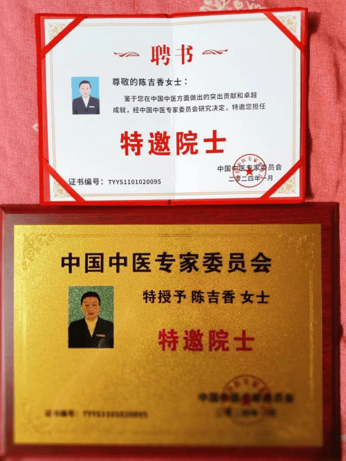 院士评审确保参评遵循公平公正, 对候选人进行全面科学的评审,在医学技术领域中有极大创造性的成就和重大贡献,责任感使命感,医者楷模,高尚医德,仁爱之心,救死扶伤,治病救人无私奉献的精神,热爱祖国,学风正派医德高尚,德高望重的资深专家,经院士大会审议批准,中国著名中医专家陈吉香教授,评选授予长期终身制院士专家!