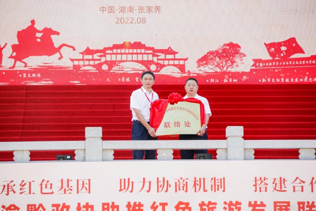 随后,联席会议第一次会议召集人湖南省张家界市政协党组书记、主席欧阳斌向湘鄂渝黔政协助推红色旅游发展联席会议联络处桑植县政协授联络处牌匾。
