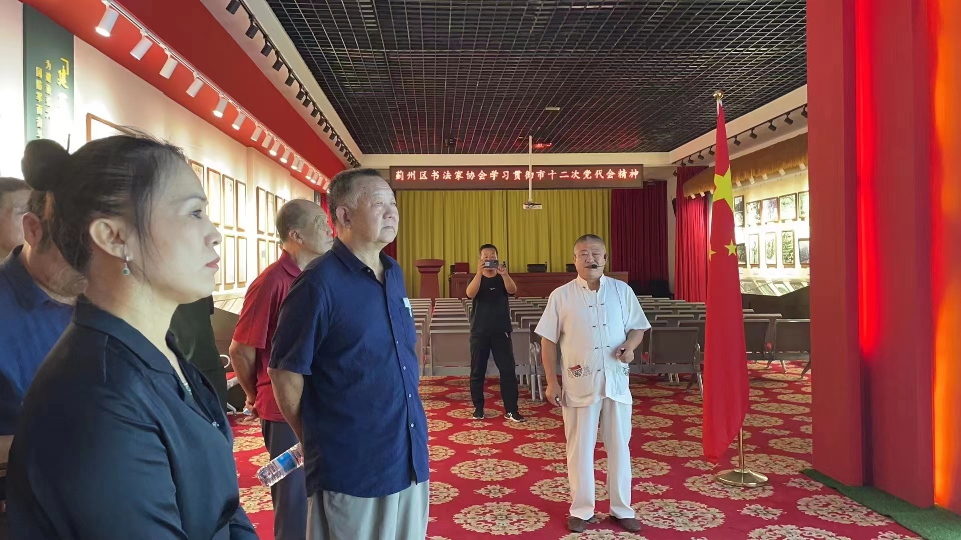 活动中,区书法家协会会员首先观看了“红色影片”,然后,在新房子村党支部书记王锋带领下,参观看了纪念馆所有展陈,通过王锋同志的讲解和观看展馆,各位会员进一步丰富了党史知识,坚定了跟党走的信念,锤炼了党性。