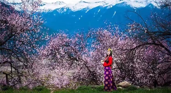 ‘’雪域三月犹寒意,林芝桃花始盛开"