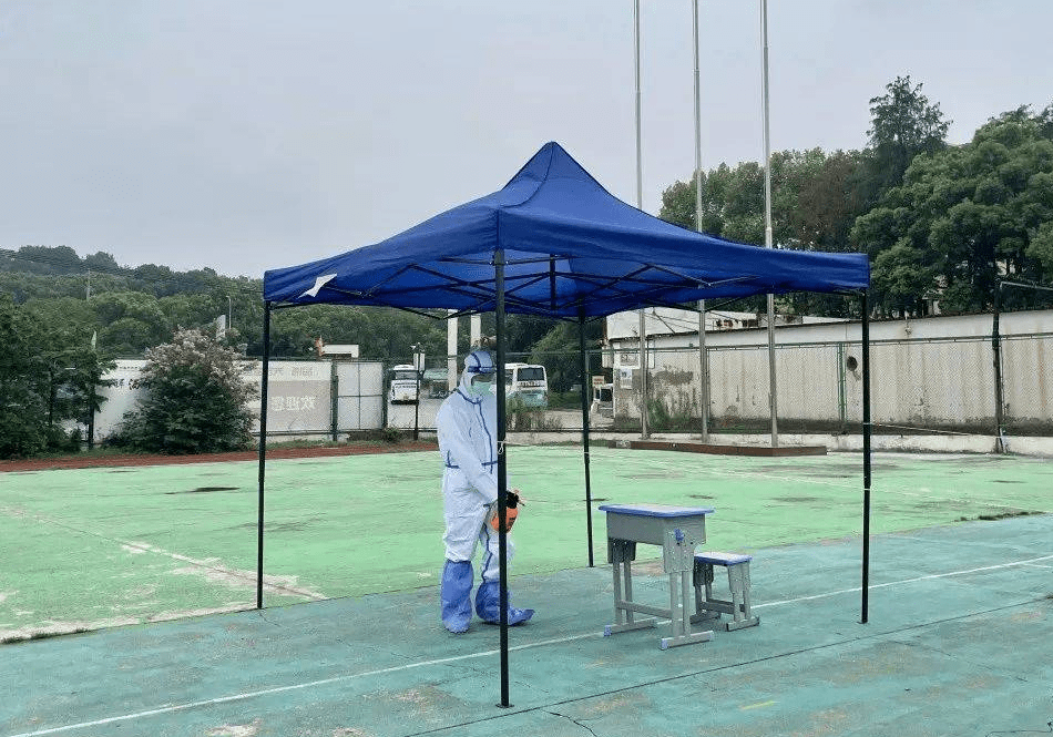 全体师生佩戴好口罩,保持安全距离,配合医护人员进行全员核酸检测。