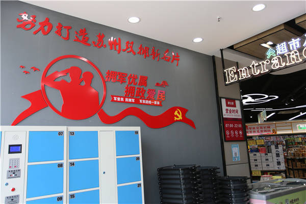 走进该双拥超市,“努力打造苏州双拥新名片”几个红色大字首先映入眼帘,店内多处布置悬挂着具有双拥特色的海报和军味浓郁的宣传画,令人耳目一新。来自某干休所的一位老干部一手提着刚买的排骨,一边指着收银台旁边的现(退)役军人优惠提示牌激动地说:“以前从未有过的,既实惠又方便,品质还好,这个超市办到我们老干部的心里了。”