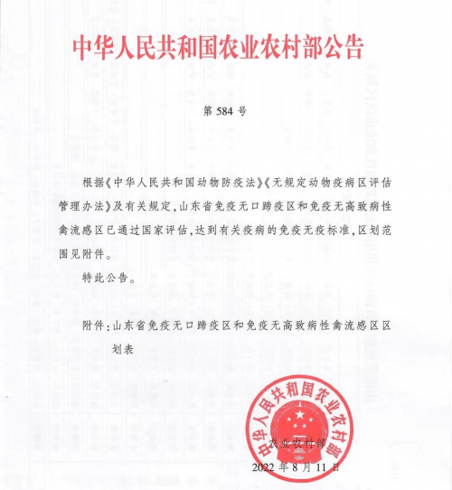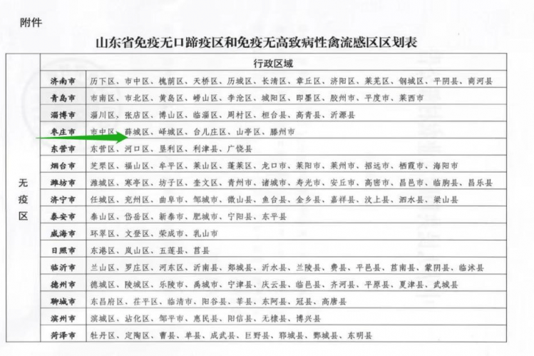 根据农业农村部公告(第584号),薛城区无疫区建设已通过国家评估,达到有关疫病的免疫标准,被认定为山东省免疫无口蹄疫区和无高致病性禽流感区。