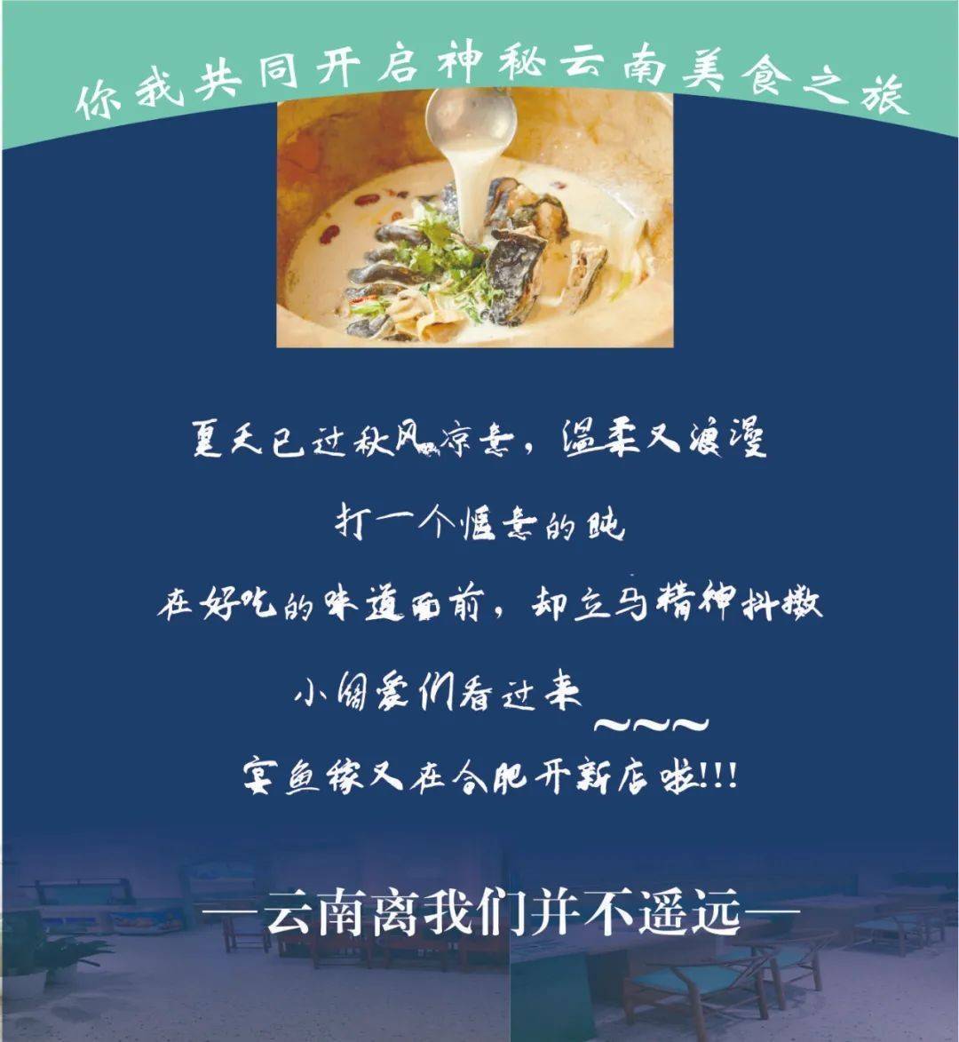 2022年9月13日,宴鱼稼合肥保利广场店即将盛大开业,我们盛装以待,欢迎各界朋友前来品尝,共同开启神秘的云南美食之旅。