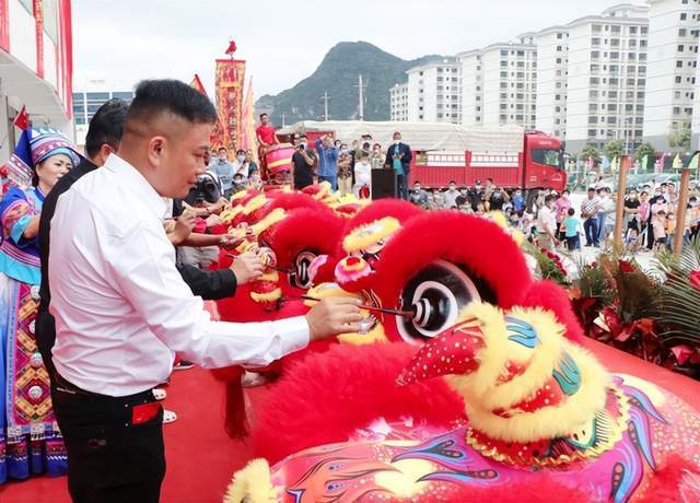 广西民族文化产业发展研究会副会长牙锋;都安德悦农产品交易市场董事长陆瑞权;云南鼎盛农业有限公司总经理赵余冰等领导上台点睛并为都安德悦农产品交易市场揭牌。