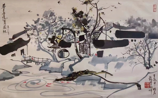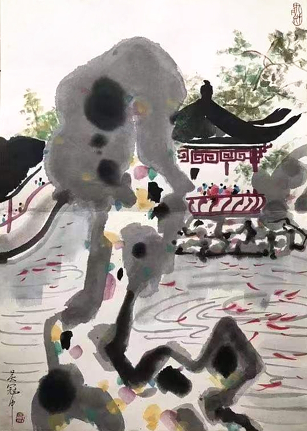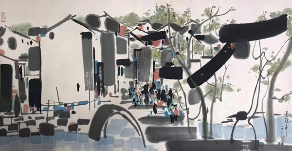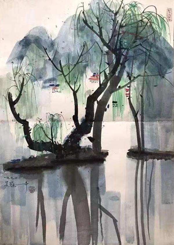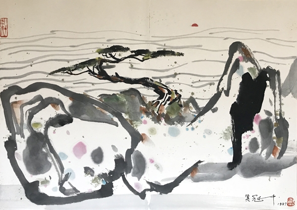凡谈及中国水墨的气韵,山水画的浩然生气独具代表。这是以中国悠久的哲学智慧为根基,逐渐凝聚在中国画家心中、血脉中的中国魂,通过画笔传达、自然流露出的动人的水墨作品。吴冠中先生的山水画从骨法用笔、用色运气皆充满创新。绘画的媒介可以创新,绘画的形式千变万幻,内心的中国魂确实不变坚固的核心,正因如此中国艺术家才经得住时代的检验,中国艺术璀璨悠远。