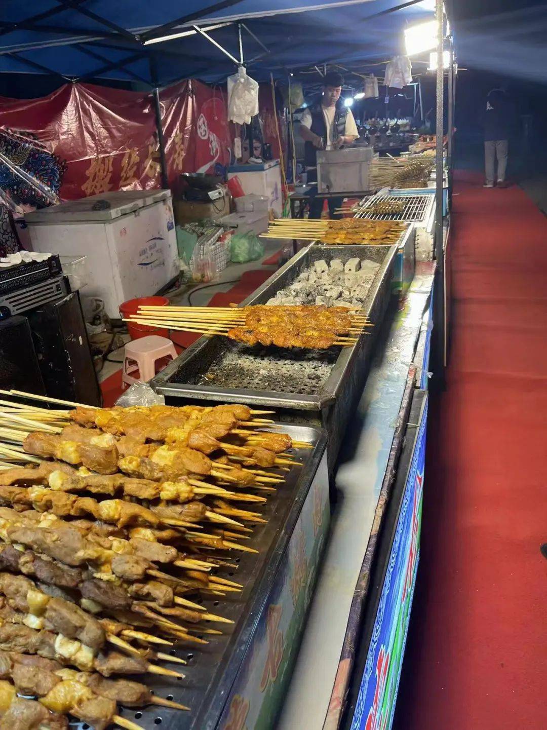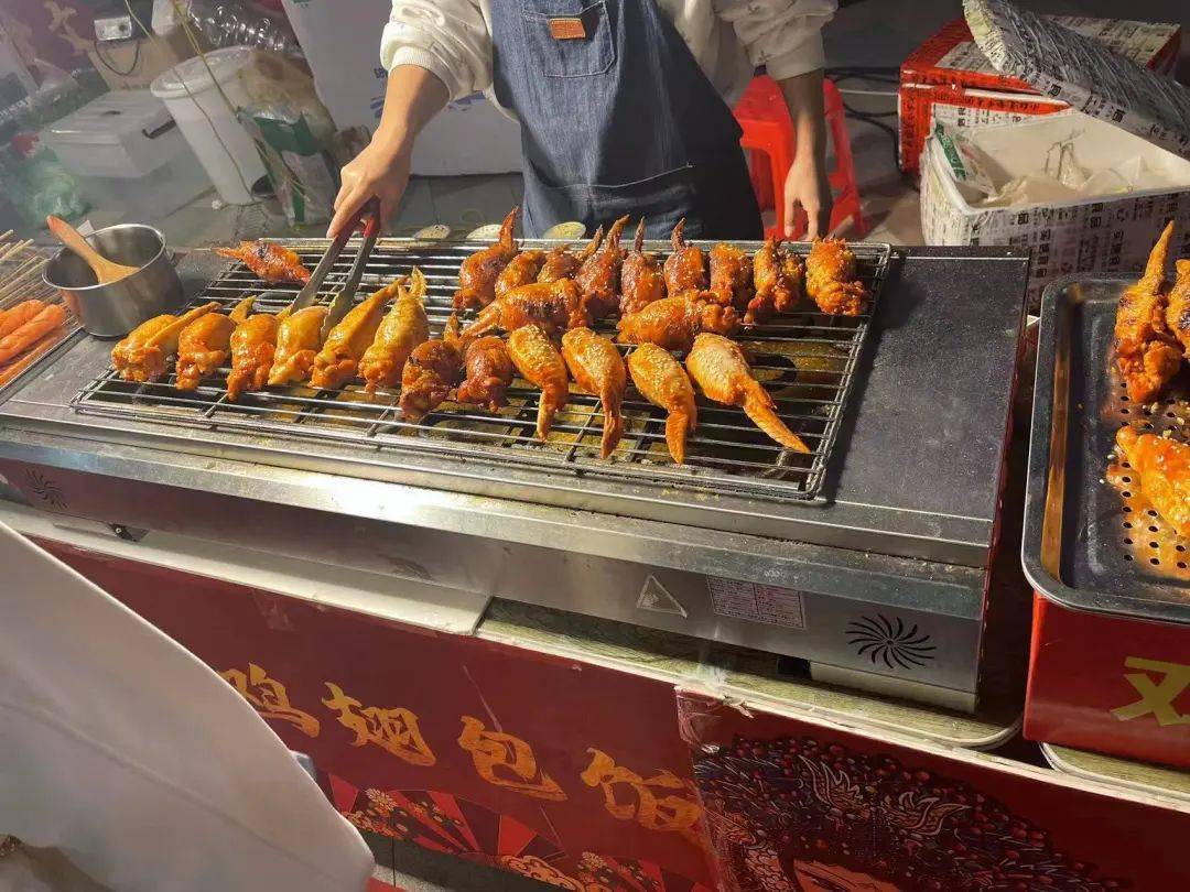 现烤的羊肉串,鸡翅等各种美味等你来大快朵颐