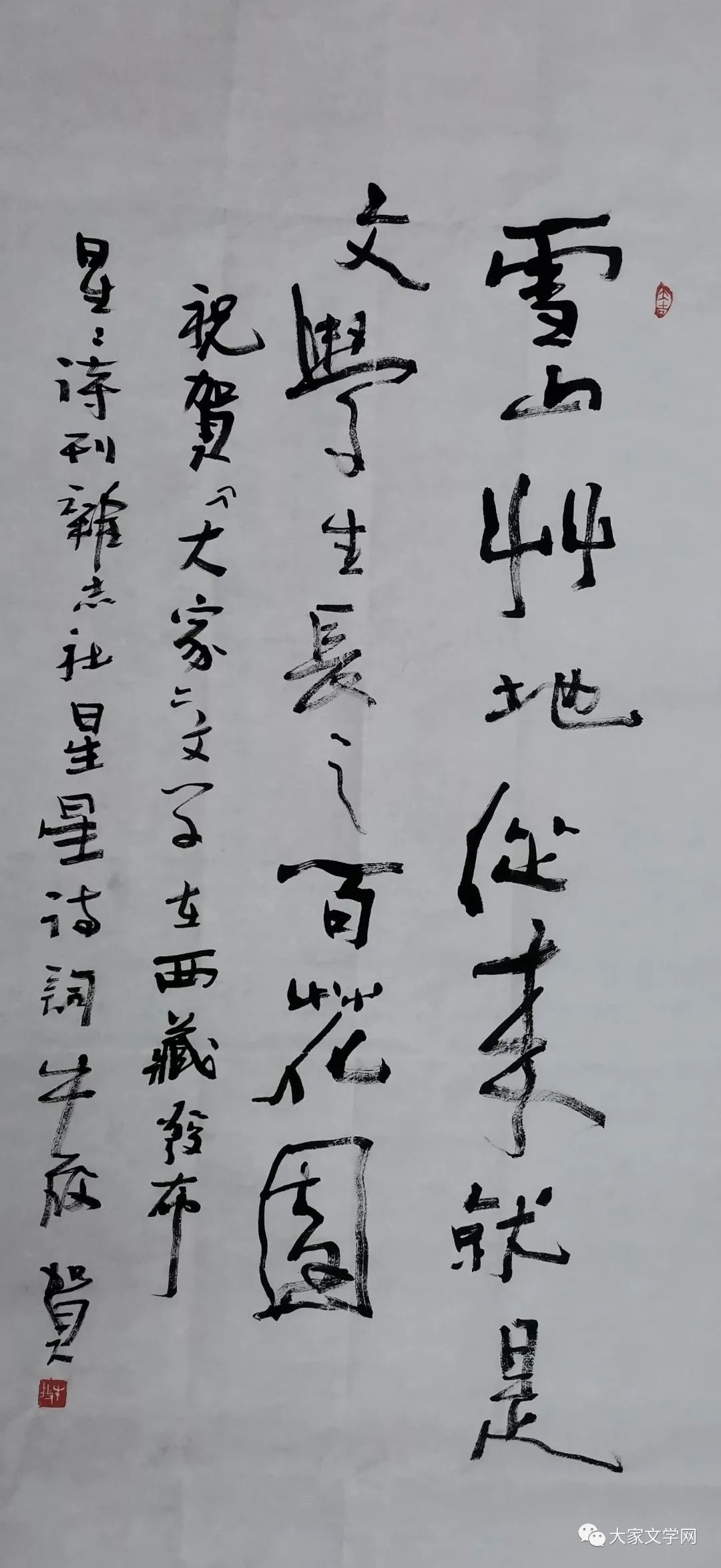 祝贺《大家》文学在西藏发布;星星诗刊杂志社星星诗词牛放贺