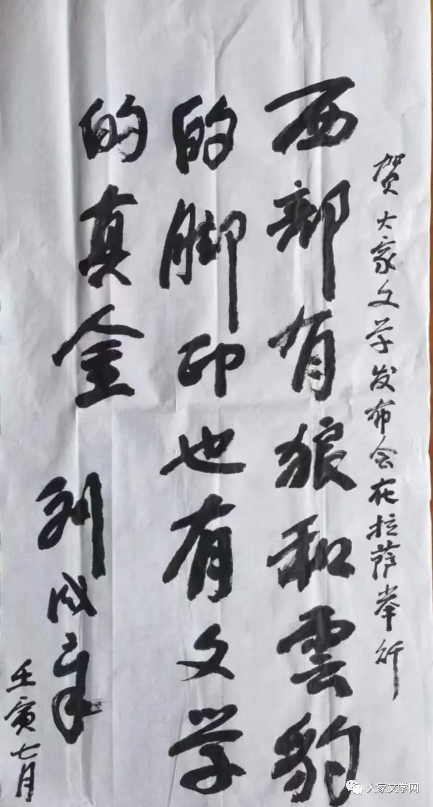鲁迅文学奖获得者刘成章祝贺《大家》文学发布会圆满成功