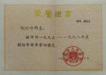 为此授予他“朝阳市特等劳动模范” ; “辽宁省学雷锋标兵” ; “辽宁省道德模范”等荣誉称号。