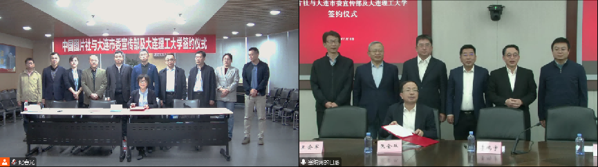 11月15日,中国图片社与大连市委宣传部战略合作协议签署仪式在北京市和大连市同时举行。大连市委副书记李鹏宇,大连理工大学副校长罗钟铉和中国图片社党委常委、副总裁王湘宏出席仪式并见证签约,大连市委宣传部分管日常工作的副部长张金双同中国图片社党委常委、副总裁黄文代表双方签署协议,中国图片社党委常委会秘书、办公室主任杨焘主持签约仪式。