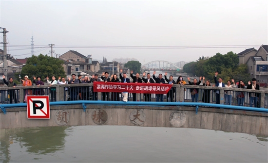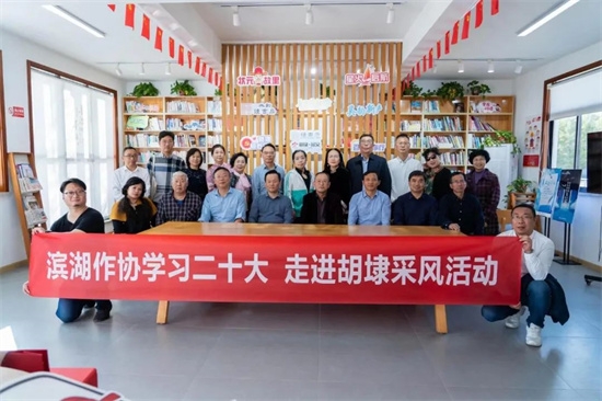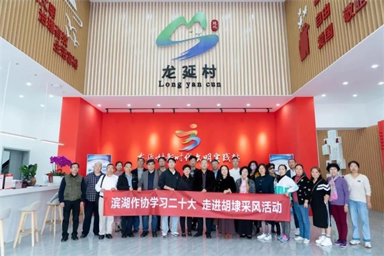 2022年11月11日,无锡市滨湖区作家协会30多名会员在中国报告文学学会会员、无锡市滨湖区文联副主席、滨湖作协主席丁康权的带领下走进胡埭,开展“学习贯彻二十大精神,采风创作暨专家文学讲座”活动。本次活动由无锡市滨湖区文学艺术界联合会主办;滨湖区作家协会、滨湖区胡埭镇党群部共同协办。当天上午,滨湖作协的作家们参观了胡埭老街老桥、龙延村展史馆和九龙湾生态步道,对于胡埭镇的历史文化、经济发展有了较为清晰的认识。在龙延村展史馆中,作家们对于这一个四千余人口的村落竟发展出了几千亿产值的各类企业连连惊叹。在九龙湾生态步道,作家们切身感受到了胡埭镇人民政府在开发本土绿色生态资源和文化旅游资源的巨大投入和丰富产出。