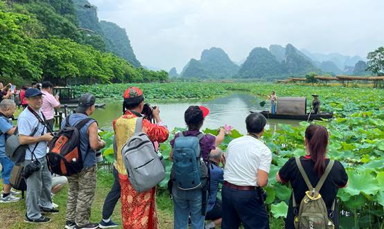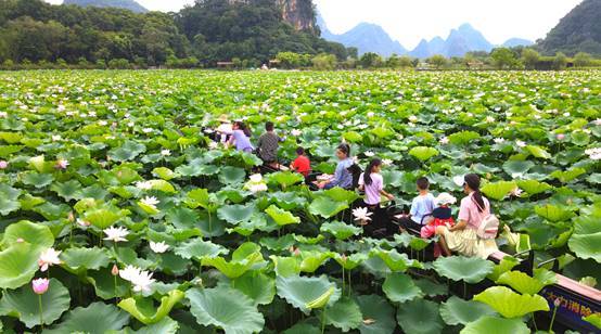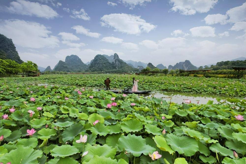据了解,峰林晓镇2023年第七届荷花节,以“荷美峰林 花漾晓镇”,为主题,文化节期间,到峰林赏荷,可以看到穿着汉服的“荷花仙子”漫步莲池中央,还可以乘竹筏乌篷船或网红小火车穿越荷塘尽赏峰林美景。