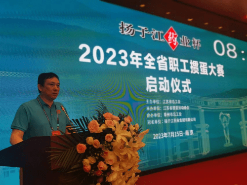 7月15日,“扬子江药业杯”2023年全省职工掼蛋大赛启动仪式,在南京玄武徐庄软件园隆重举行。本次大赛是由江苏省总工会主办、省掼蛋运动协会承办、泰州市总工会协办、 扬子江药业集团有限公司冠名的重要省级赛事。参加启动仪式的有相关领导、特邀嘉宾;各设区市总工会、省各产业工会(厅、局、企业)分管主席、宣教部长;冠名单位代表、组委会全体成员、省掼蛋协会指派的裁判员、参赛运动员、新闻媒体及工作人员近300人。