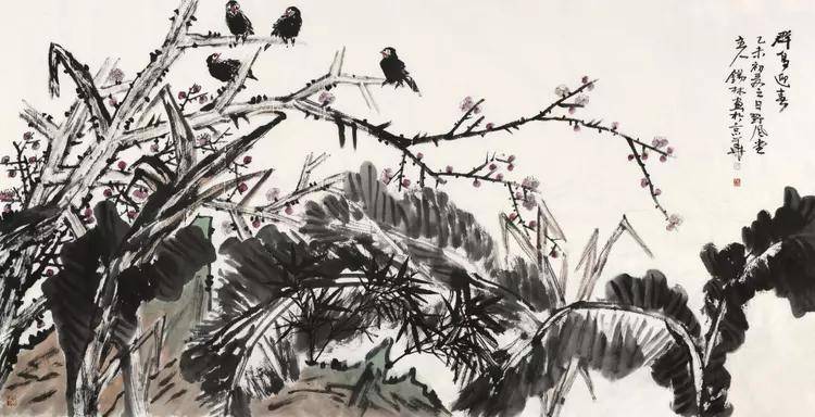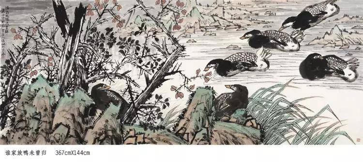 和那种小家子气的故作姿态和刻意矫饰不同,观赏潘锡林先生的 丹青画作,给人的第一感觉就是十分地痛快且豪爽!而这种画风感受 的产生也是无外乎于两方面因素,其一即是源自于潘锡林先生对传统 写意笔墨表现的一脉正取,其二则就是因为他那与生俱来的精神气概 和自然情怀!所以由此概言之,潘锡林先生的丹青画作也绝对是属于 极其纯正的文人画一路,达其性情,抒其胸臆,此一点着实可贵!在笔墨上,潘锡林先生则是十分讲求于一种意在笔先的创作理念, 以至于每每观赏其画,都是能与清人蒋和所言妙论相符,即未落笔时 先须立意,一幅作品之中有气有笔有景,种种具于胸中,到笔着纸时,直 追出心中之画,理法相生,气机流畅,自不与凡俗等!也正因如此, 其笔下的物象构意也早就已是有别于匠俗之笔的生搬硬照,取而代之 的,则是一种能够得之于心、应之于手的境界呈现,意造其妙,跃然 纸上!