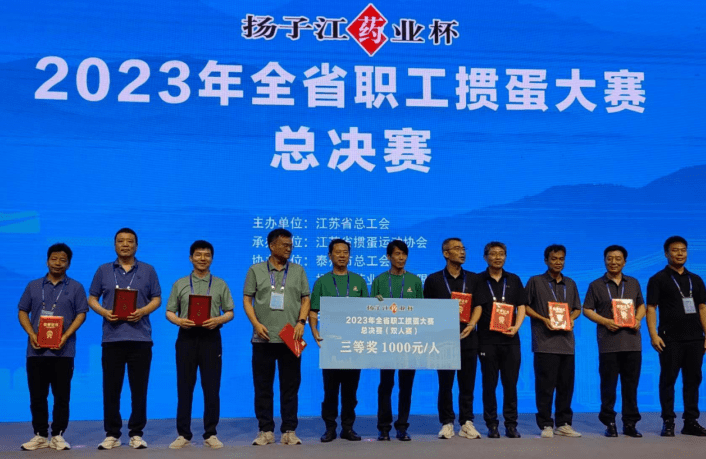 获得大赛双人赛三等奖的是南通市总工会朱祝言、孙骥,省交通运输工会杨金国、邢鑫,省电力工会蒋青松、蒋伟兴等10对20名掼蛋运动员。