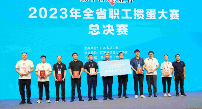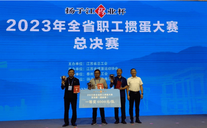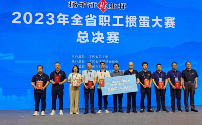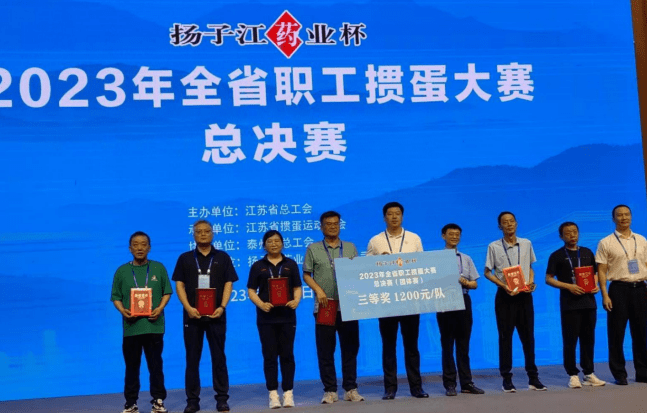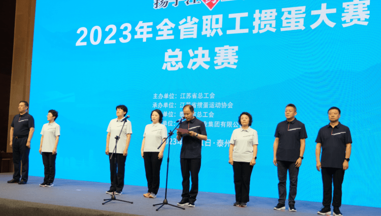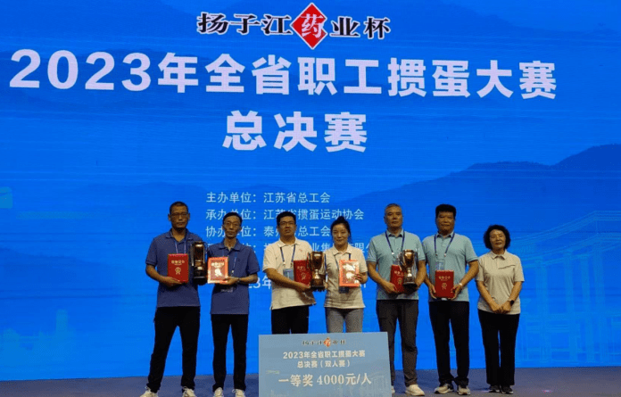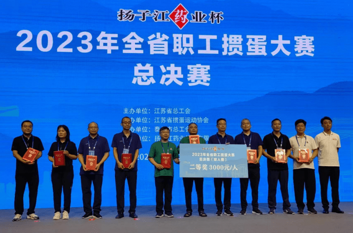 “扬子江药业杯”2023年全省职工掼蛋大赛,是由江苏省总工会主办,江苏省掼蛋运动协会承办、泰州市总工会协办、扬子江药业集团有限公司冠名的重要省级赛事。大赛自7月15日在南京启动以来,经过各设区市总工会和省产业(厅、局、企业)工会预赛,8月11日,在泰州天德湖宾馆举行总决赛。来自全省13个设区市、11个产业工会的24支代表队,约350名裁判员、运动员、教练员和工作人员齐聚泰州,共同参与这次体育盛会。江苏省总工会、省掼蛋运动协会、泰州市委、市人大、市总工会、扬子江药业集团的有关领导出席总决赛开赛仪式。