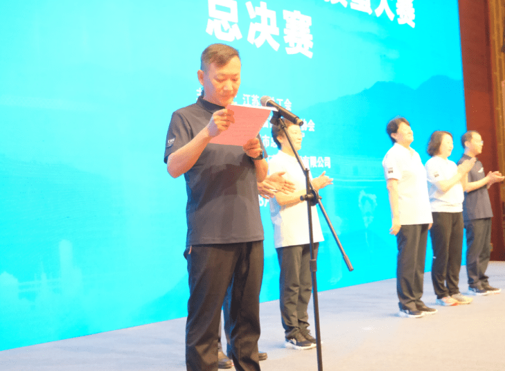 江苏省掼蛋运动协会副会长、总裁判长姚继平宣布比赛成绩
