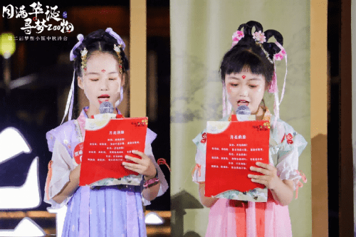 夜幕降临,明月皎皎,中秋诗会在优美的国风舞蹈表演中拉开序幕,参加诗会的各位小小梦想家们上台朗诵古诗词。现场邀请到国家一级演员、导演,浙江省朗诵协会理事、副秘书长张康男和杭州话剧艺术中心演员、浙江省朗诵协会会员 王新园,进行现场点评与指导。汉服走秀、斗诗表演让大家仿佛穿越至古代街市,感受着华丽的视觉体验。