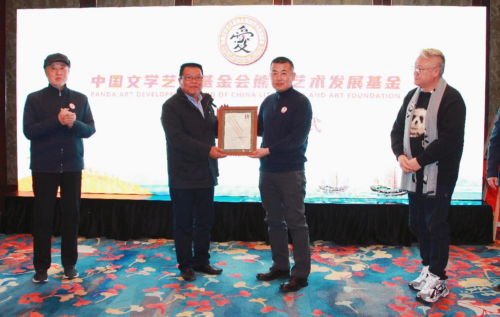 中国文学艺术基金会王文雅主任(右二)向莫南雄董事长颁发捐赠证书