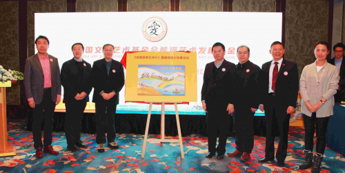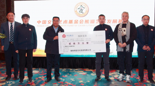 海南得壹文化集团董事长莫南雄(左三)代表集团向熊猫艺术发展基金捐款