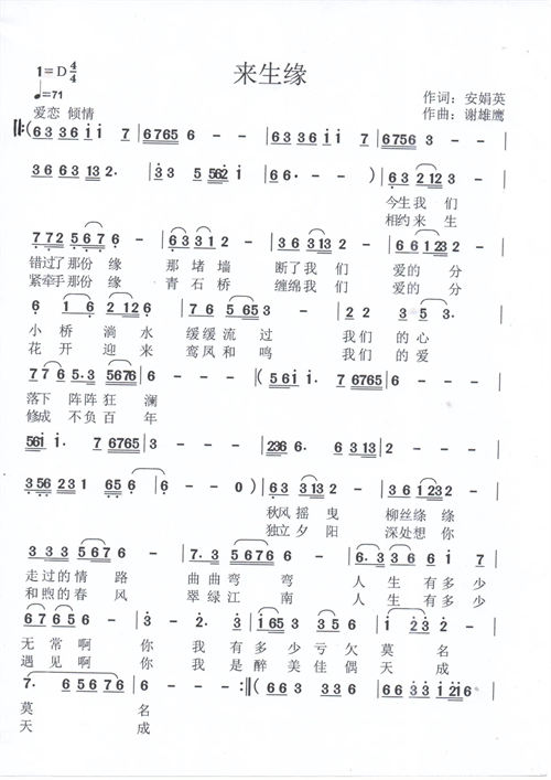 来 生 缘 (歌词)