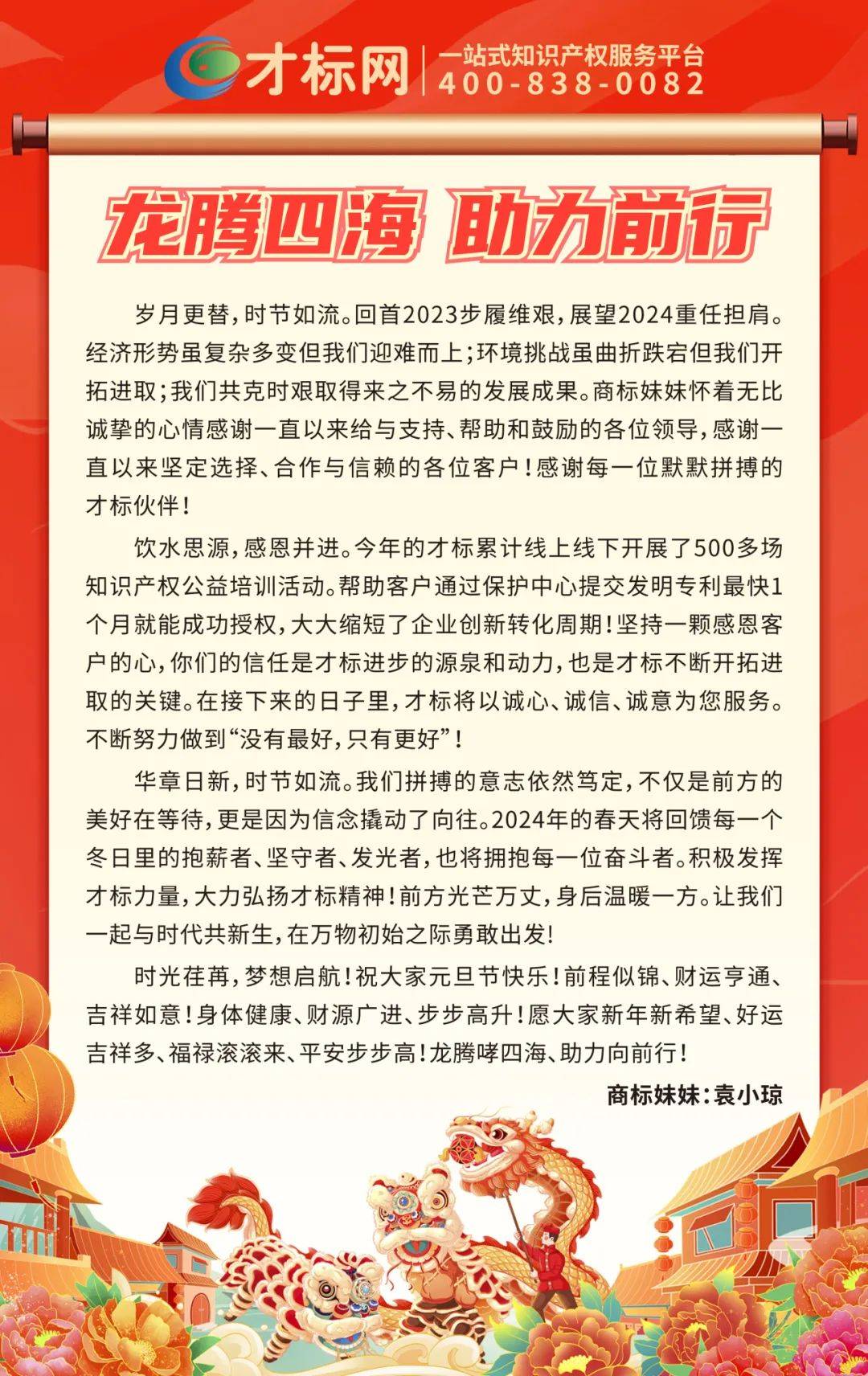 朝朝暮暮,沉淀过往。商标妹妹怀着无比诚挚的心情感谢一直以来给与支持、帮助和鼓励的各位领导,感谢一直以来坚定选择、合作与信赖的各位客户!感谢每一位默默拼搏的才标伙伴!