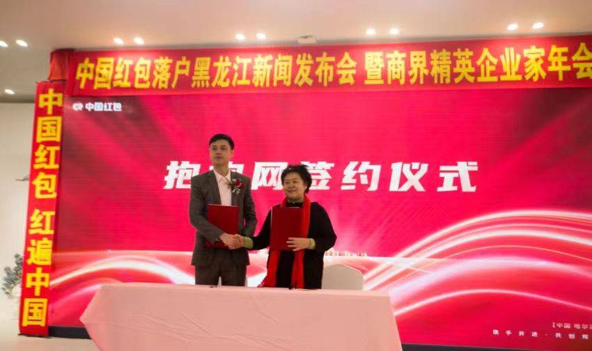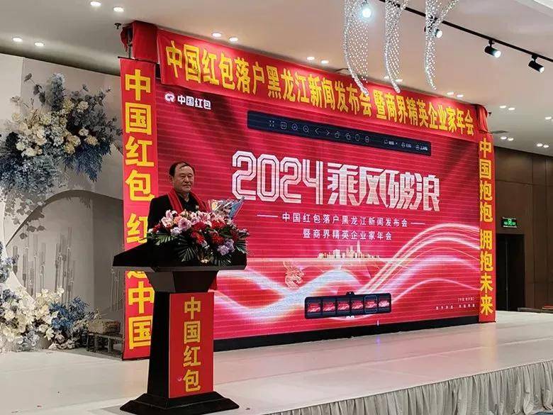 2024年1月27日上午,中国红包落户黑龙江揭牌仪式暨商界精英企业家年会在哈尔滨报业大厦五楼宴会厅隆重举行。