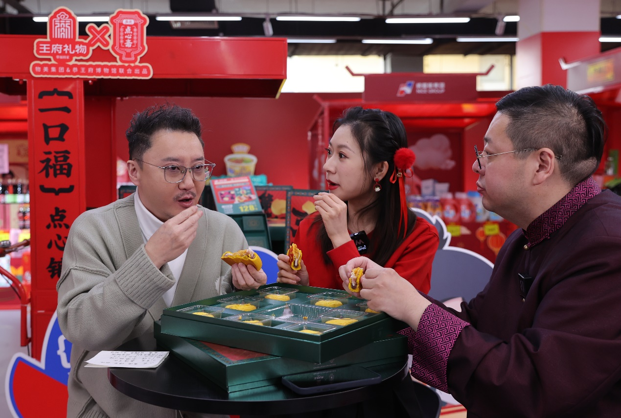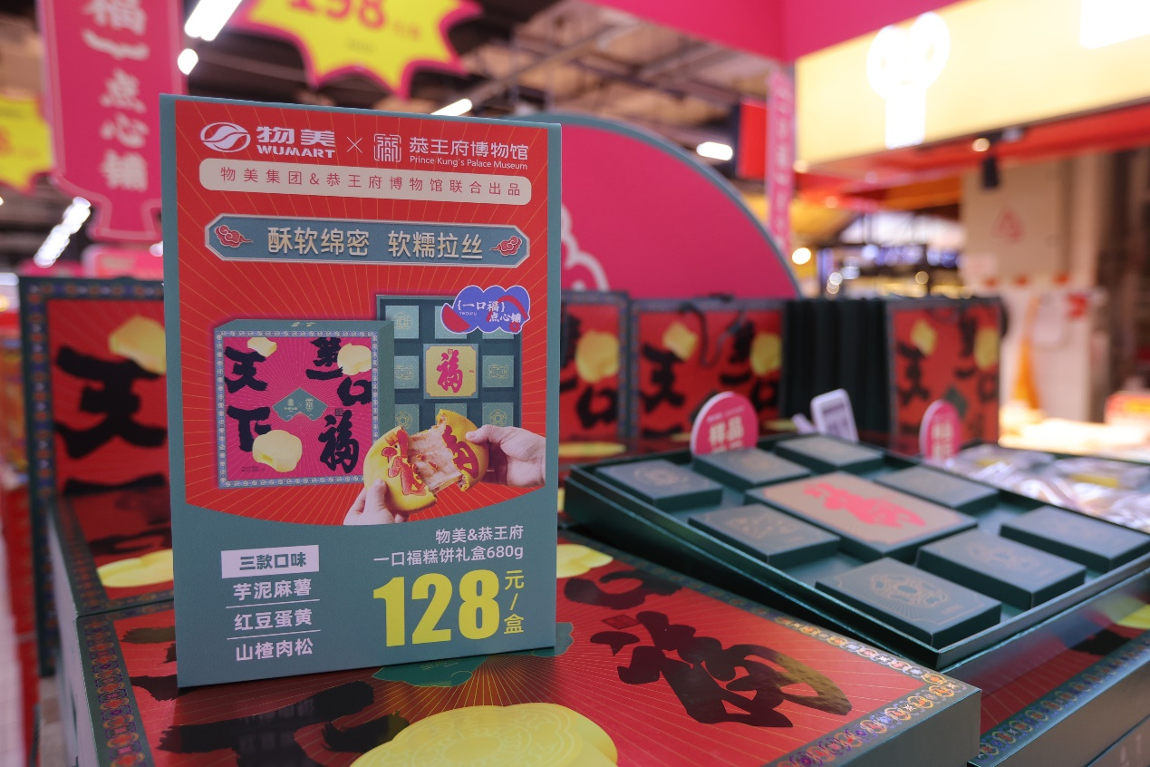 数百年的王府历史,蕴含着中国文化中对精雅生活的理念,契合当下人们对美好生活的追求。如今,物美与恭王府联手,将“福”文化融入产品,推出一口福糕饼礼盒、“包揽福气”编织布手提袋等产品,一口福糕饼礼盒内包含三种口味的点心,采用复杂的制作工艺,臻选咸蛋黄、肉松、山、红小豆为主料,呈现出精巧美味,运用恭王府后橱窗形状制成精巧外观,以装饰之美,深刻精神之美蕴含深厚文化底蕴,结合中华传统“福文化”,传达天地人和的美好寓意,不仅让更多的人感受到中国传统文化的魅力,更为消费者带来更丰富、更有内涵的购物体验。