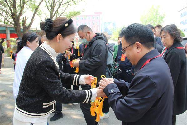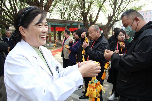 代表们走过慈丹堂,医院的领导及工作人员为代表们献上醒神开窍的香囊,代表们随身携带,感受着浓浓的药香,心旷神怡。