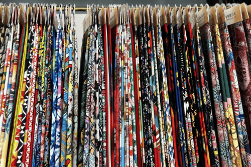2019年,烫金印花掀起流行风尚,罗丽琴在保留原有梭织产品的基础上毅然开辟新的板块,带领公司大量投身针织印花。然而,捕捉流行趋势并不是盲目跟风。罗丽琴从广州引进彩雕工艺,生产不同于市面上的印花面料。“一般来说面料印花一道过去就好了,它是要印两道,即第一次印过去看不到花型,然后回一道过来,花型才呈现出来。”罗丽琴介绍道,该工艺对底布有一定要求,通常使用CVC,效果更加精致逼真,颜色层次感也更强,一经推出就备受客户青睐。