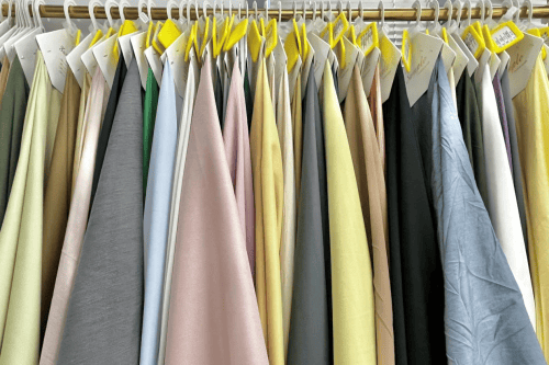 鉴于花型的“保鲜期”较短,近年来,易灿纺织也延伸做素色和拼接面料。2023年下半年以来,新中式风格面料花型爆火,对标客户要求,公司则生产与提花面料相似的底布来做印花产品。今年,罗丽琴又新成立了一个公司专注销售CEY、四面弹产品,加强针对性销售……“客户拿我们家的面料基本可以不用考虑款式,我们把面料可以应用的最前沿的款式打版出来免费提供稿子给客户参考。”罗丽琴说道,易灿纺织总是站在客户立场去考虑问题,去设计和推荐真正适合客户、符合客户需求的方案,由此,她也成功成为“千万销量女裤背后的女人”。
