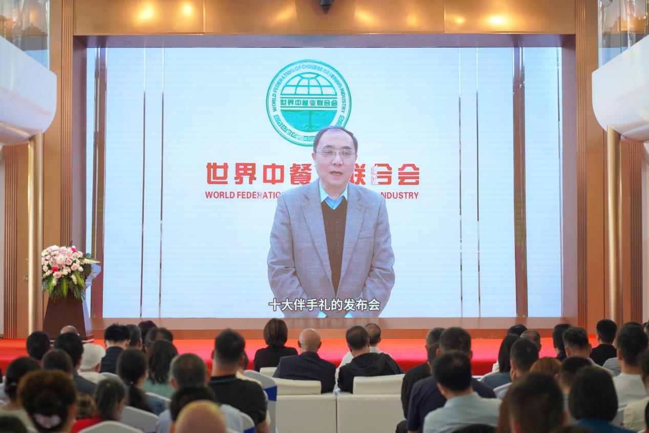 在揭幕盛典现场,世界中餐业联合会会长邢颖特地发来视频贺辞,对此次评选活动圆满举办表示衷心祝贺,并表示希望楚菜发展的越来越好,出圈出海。接着,十位嘉宾走上舞台,共同开启了武汉“十大名菜、十大名点、十大伴手礼”的发布。