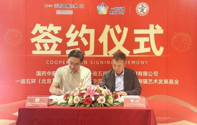 2024 年 6 月 6 日,中国文学艺术基金会熊猫艺术发展基金与一亩五环(北京)体育有限公司战略合作签约仪式暨“熊猫中中之辗转球”国版明信片发行仪式在国药中服免税北京店隆重举行。中国国际医药卫生有限公司国际业务协同中心副总经理刘小宝,国药中服免税华北大区副总经理、北京店、天津店总经理李江玲女士,国药中服免税华北大区财务总监张克,中国文学艺术基金会熊猫艺术发展基金发起人、著名熊猫画家刘中,熊猫艺术发展基金名誉理事长张敏女士、秘书长徐大伟,《集邮》杂志社社长、总编丛志军,一亩五环(北京)体育有限公司董事长杜一鸣,北京金色河畔总经理马占光,拉菲罗斯柴尔德高管吴昊,太空舱酒业创始人、董事长葛腾飞等嘉宾济济一堂,共商熊猫艺术助推体育事业发展大计。
