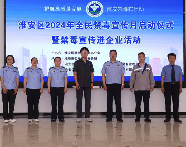 6月6日下午,淮安区“全民禁毒宣传月”启动仪式暨禁毒宣传进企业活动在江苏永安制药有限公司举行。淮安区禁毒办、区公安分局、淮安区人民检察院、区人民法院、区市场监督管理局、淮安区“天下无毒”志愿者、江苏永安制药有限公司共70余人参加了活动。