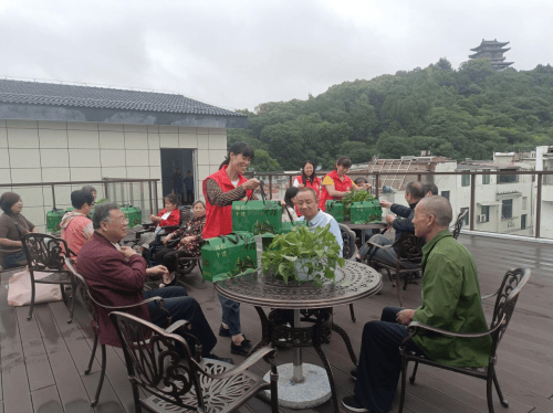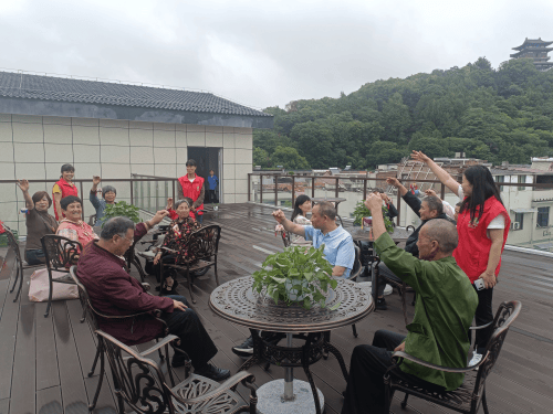 在鼓山社区五楼露台上,一盆盆生机盎然的绿罗和穿着红色热情的马夹志愿者,营造出浓厚的节日氛围。来自南明街道不同社区、不同残疾类别、不同残疾等级的十三位残疾朋友共同参与这场主题为“康乐同行 端午送温暖 助残暖人心”的活动。
