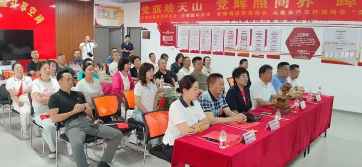 新疆建材商会、兵团民营经济研究会、新疆酒店用品商会、乌鲁木齐市外贸商会四家两新党组织联合开展《党旗映天山、党辉照商界、踔厉勇向前》主题党日活动,四大商会会长、党支部书记和全体会员企业的党员同志全程参与了活动。