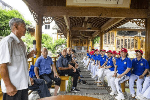 座谈会后,全体老兵换上了姐妹花义工赠送的退役军人特制服装,并一起到后院合影留念。姐妹花义工协会还为退役老兵准备了丰盛的午餐,早早让悠见南山民宿采购了新鲜的食材,请了一位高级厨师精心烹饪,还捣麻糍,真像过节一样隆重。姐妹花义工与南山村老兵及村干部,在“悠见南山民宿"宽畅别致优雅的餐厅里,大家纷纷举杯,提前庆祝建党建军节。餐后离席,姐妹花义工夹道相送,还给每位老兵送上一份过节礼物。相处仅有半天,分手依依不舍。