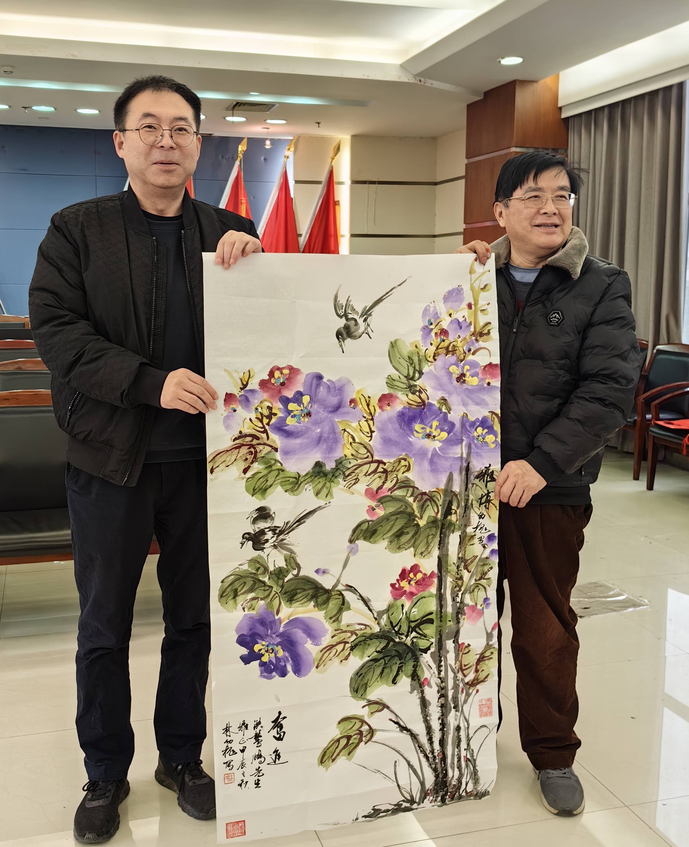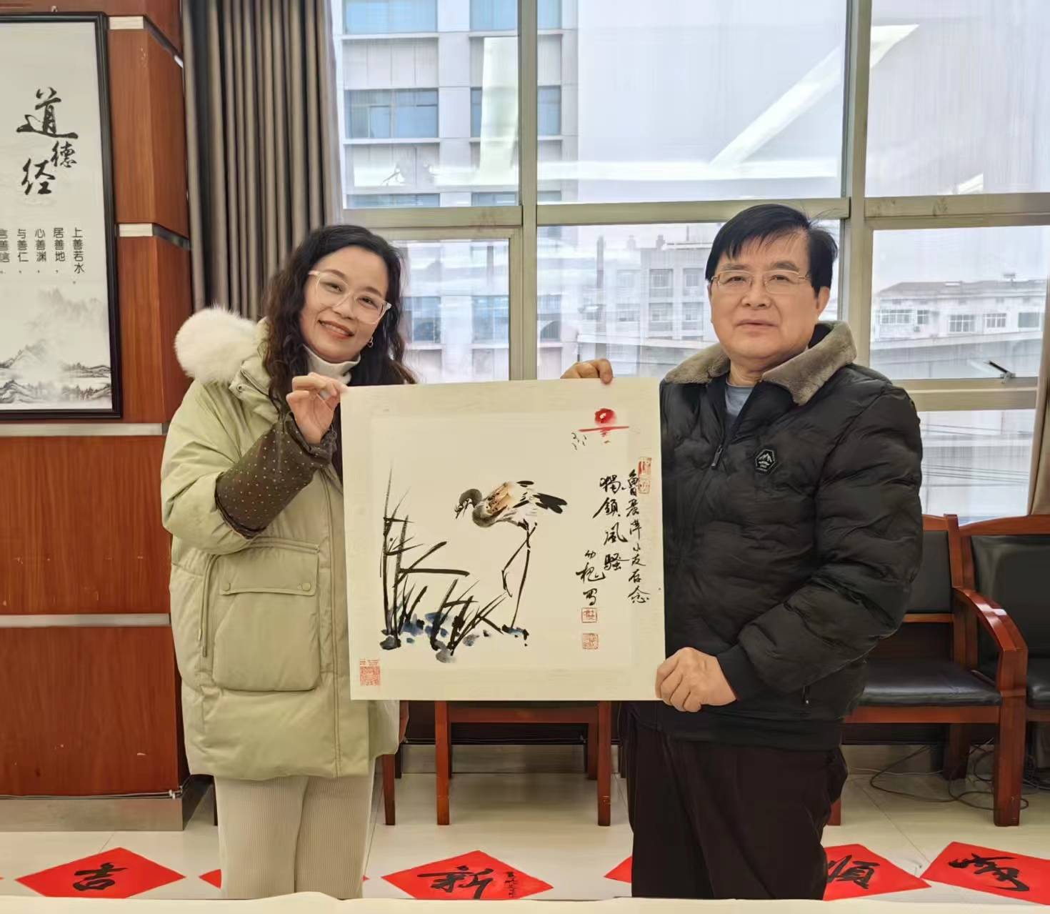 2025 年元月 23 日,南方小年的祥瑞之风吹拂着董永故里孝感市电信分公司。在这温馨的时刻,国家一级美术师、湖北天翼书画家协会主席林幼槐,湖北省硬笔书法家协会副主席、墨香荆楚书画院副院长陈艾,湖北省国画院副院长、武汉理工大学设计与艺术学院院长徐进波等书画家应邀而至,挥毫泼墨,为孝感电信的员工们写春联、送祝福、创作书画,让墨香与温情交织,共迎新春佳节。