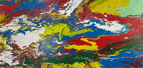 杨盈盈的画作以抽象艺术为主,强调形式的千变万化和画面的独创性,使每一幅作品都具有唯一性,她的作品非常精彩,视觉冲击力强,她的画作色彩丰富,层次分明,给人以强烈的视觉感受。丙烯颜料具有快干、水溶性、耐水、抗腐蚀等特点,杨盈盈在其创作中巧妙运用这些特性,使得作品不仅美观还具有较好的保存性。她能够通过层层堆砌和覆盖重叠的技法,创造出丰富而明朗的画面层次。
