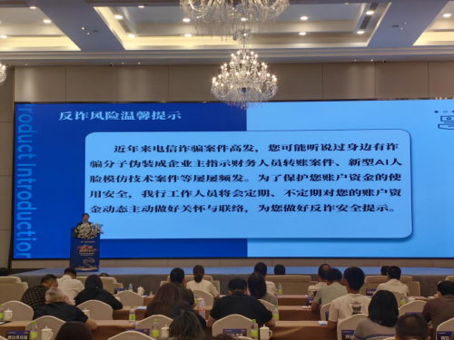 本次大会汇聚了中水舟山远洋产业链上的众多关键角色,尤其是掌握企业资金命脉的企业主和财务人员。因此,民生银行舟山分行产品经理在会议现场,特别针对这一高净值、高风险人群,进行了深入浅出且极具针对性的反诈安全温馨提示。宣讲直击当前高发的电信网络诈骗犯罪态势,为参会人员带来生动的反诈案例。