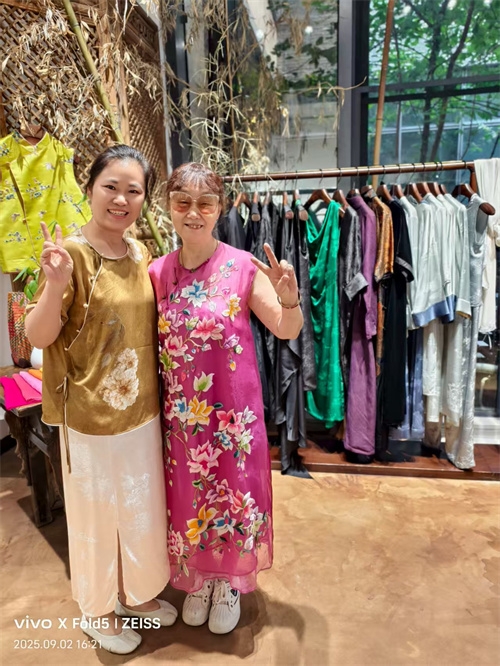 主人笑意盈盈地引路,指尖拂过衣料时,眼底是藏不住的珍视。“这是盛唐牡丹,”他轻声介绍,语气里带着与有荣焉的骄傲,“它不只是一个品牌,更是东方文化与品质的化身。”