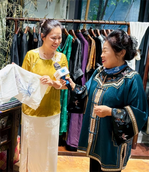 李公堤的一隅,盛唐牡丹的门店似一座藏着东方秘境的花园。推门而入,琳琅满目的华服即刻攫住目光——绣着缠枝莲的旗袍领口泛着温润光泽,缀着云纹的唐装下摆藏着流动的韵律,每一件都像从时光深处走来,却又带着鲜活的当代气息,让人在缤纷与精致中恍惚,仿佛坠入了一场关于美与传承的绮梦。