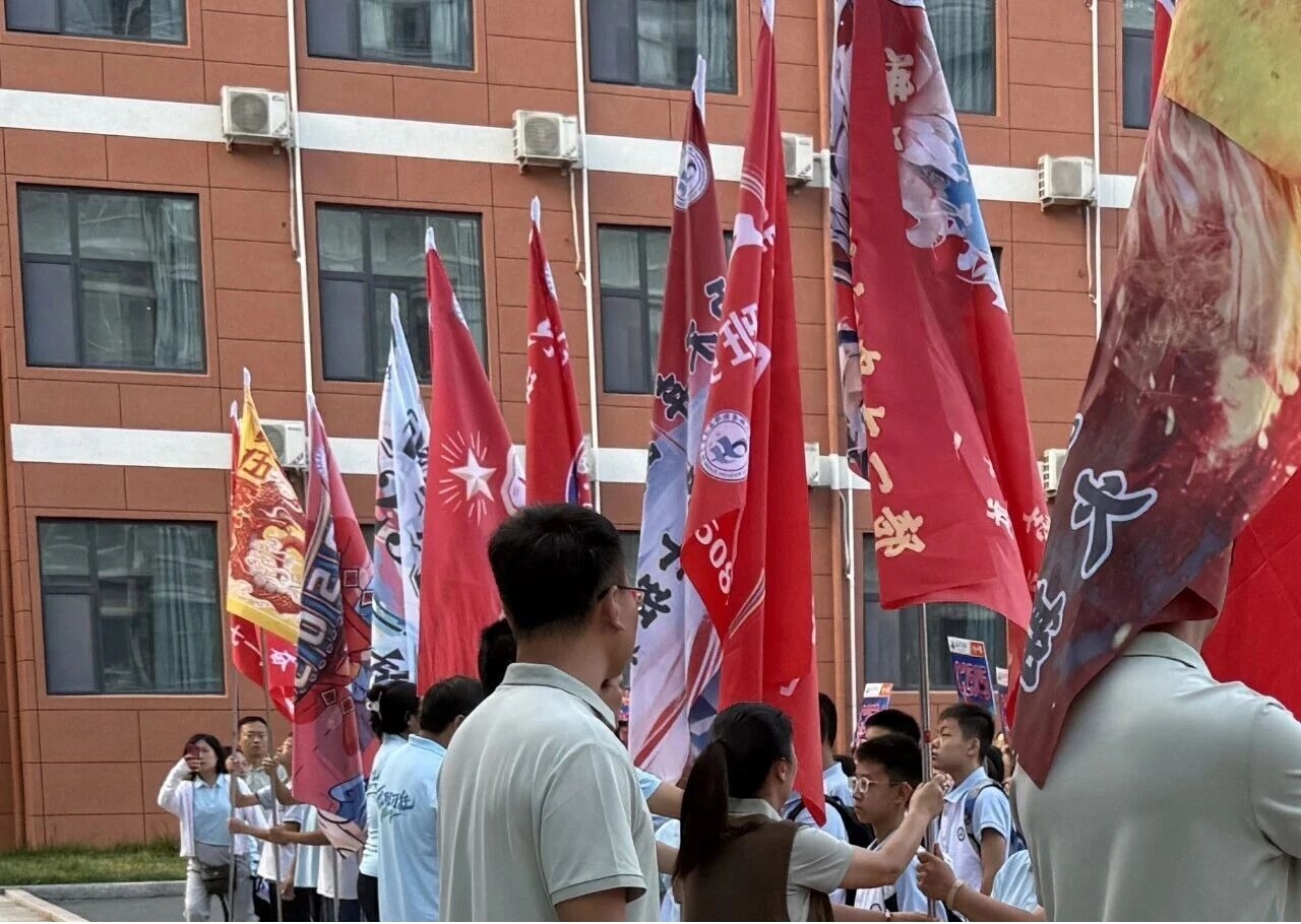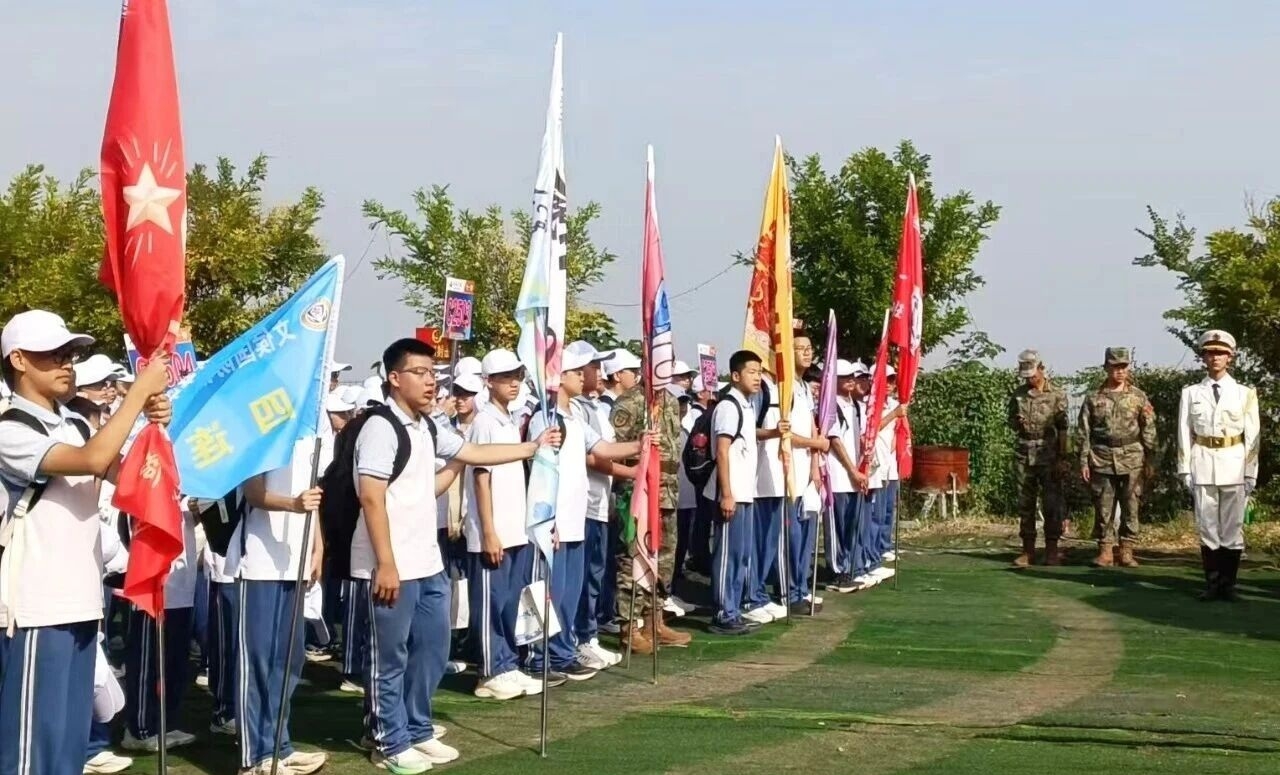 旗帜飘扬,使命在肩。在校领导与班主任的庄重授旗中,远足之旅正式开启。
