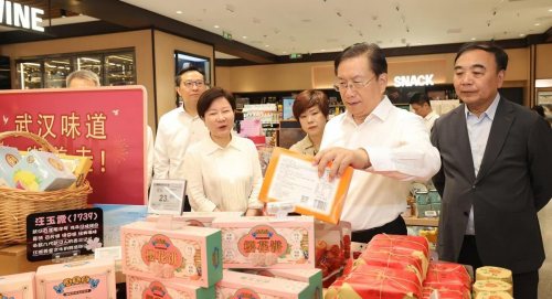 8月21日,湖北省委书记、省人大常委会主任王忠林在武汉市调研促消费、稳增长工作。走进武汉SKP武汉味道汪玉霞品牌展台观看系列产品。