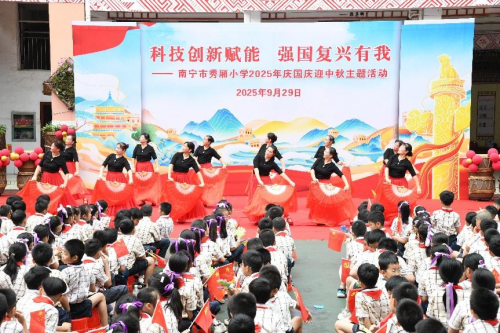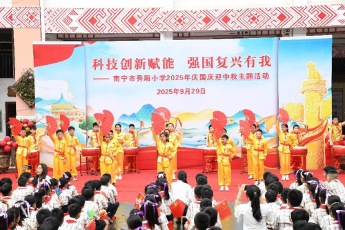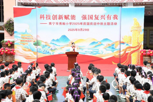 国庆中秋双节将至,为落实立德树人根本任务,9月28日上午,南宁市秀厢小学以“科技创新赋能 强国复兴有我”为主题,将家国情怀培育与科技探索实践深度融合,举办庆国庆迎中秋主题活动,为全体师生打造了一场既有思想厚度,又有实践温度的节日思政课堂。