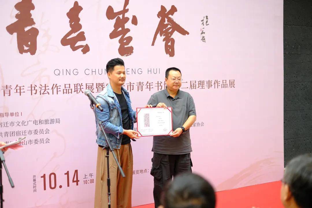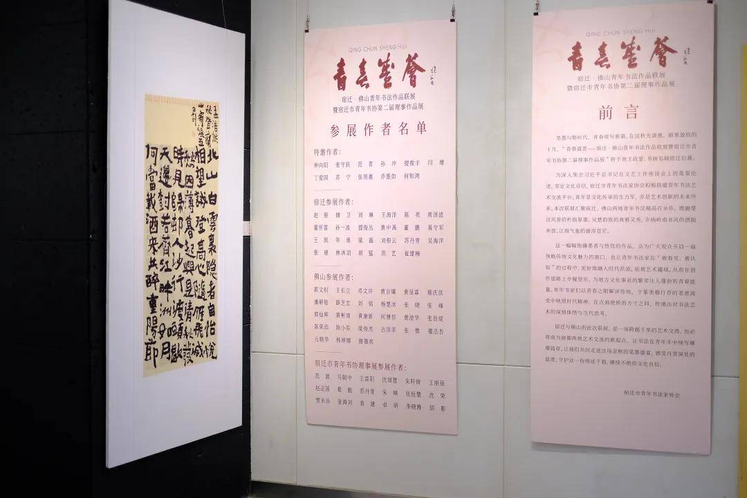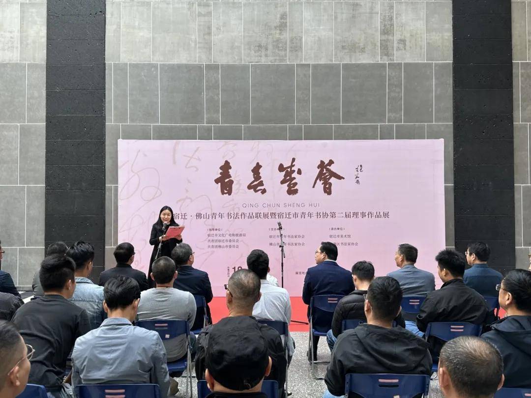 10月14日上午,由宿迁市文化广电和旅游局、共青团宿迁市委员会、共青团佛山市委员会作为指导单位,宿迁市青年书法家协会、佛山市青年书法家协会主办,宿迁市美术馆、宿豫区书法家协会承办的“青春盛荟”宿迁·佛山青年书法作品联展暨宿迁市青年书协第二届理事作品展在江苏省宿迁市美术馆开幕。
