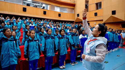 10月18日,新疆艺术剧院“杂技歌飞扬·少年艺成长”文化艺术研学活动温情启幕,乌鲁木齐市第六十七中学500余名师生与剧院杂技团、歌舞团演员齐聚一堂,在沉浸式体验中感悟中华优秀传统文化魅力。