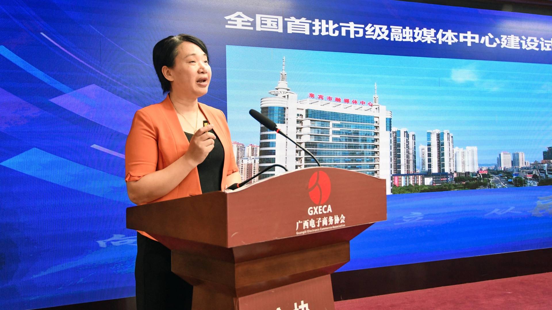 来宾市融媒体中心主任韦付玲以“AI赋能乡村振兴” ,分享了融媒体中心AI数智化管理的典型经验