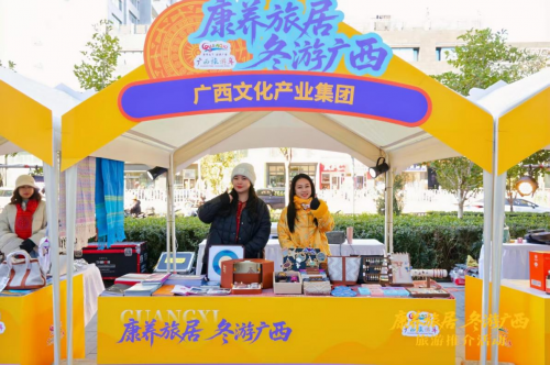 当日上午“康养旅居 冬游广西”文旅体验活动在北京市朝阳合生汇开展,独具广西特色的文旅商品展销吸引了许多北京市民游客驻足。